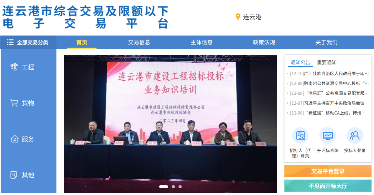 连云港市综合交易及限额以下平台 (http://lyg.etrading.cn)已于2023年4月建设完成,已完成CA锁互联互通、招标投标工具制作、专家在线抽取、不见面开标、开评标场地、电子存档等建设,满足广大招投标主体使用;